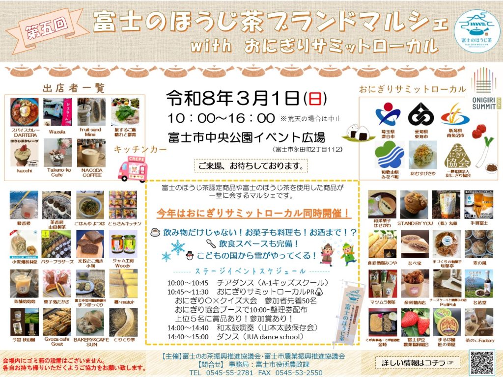 第五回富士のほうじ茶ブランドマルシェ~withおにぎりサミットローカル富士~開催(3月1日)